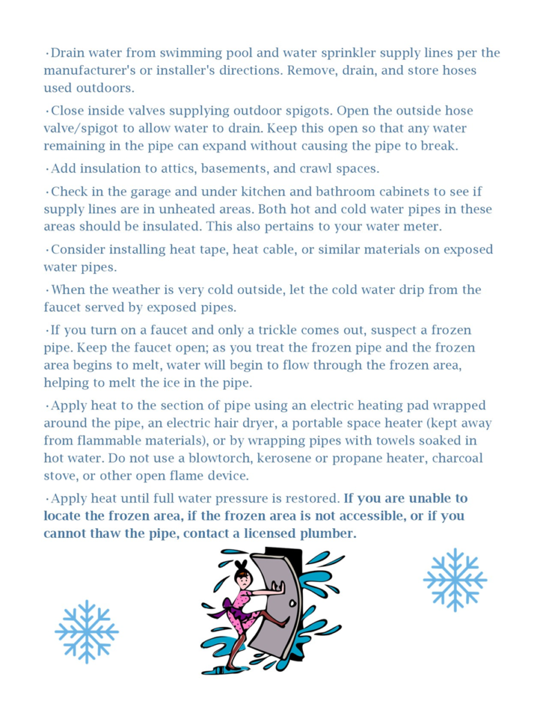 Thank you for your cooperation! Read below for important winter weather water tips: